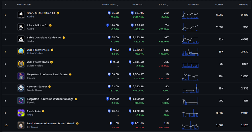 據 Mavis Market,三種 NFT 在過去一周的地板價漲幅皆超過五成。