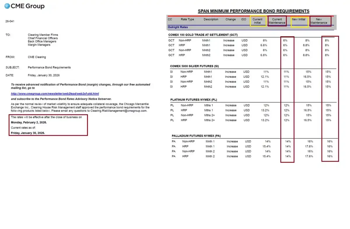 芝加哥商品交易所发布通知,保证金比例从 11% 上调至 15%