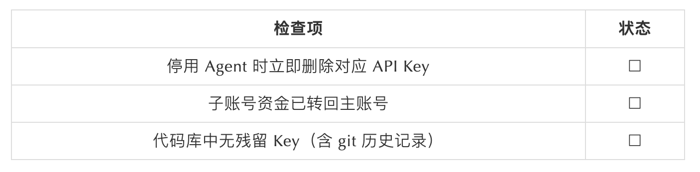 - 停用 Agent 时立即删除对应 Key,不留残余攻击面