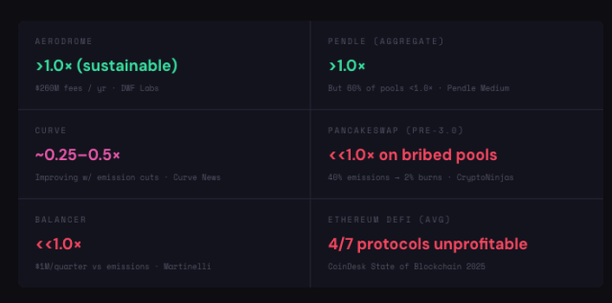 ve 代币模型并非普遍失效。Curve 的 veCRV 和 Aerodrome 的 ve(3,3) 仍在健康发展。