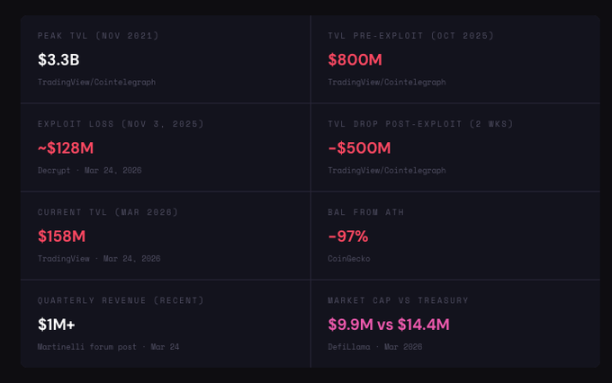 随后发生漏洞攻击。Balancer V2 交换逻辑中的一个四舍五入漏洞在多个链上被利用,造成约 1.28 亿美元损失。两周内 TVL 下降 5 亿美元。Balancer Labs 再次面临难以承受的法律风险。