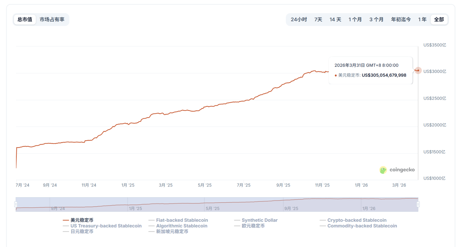 稳定币站在 3000 亿美元的历史高点关口,已经有一段时间了。