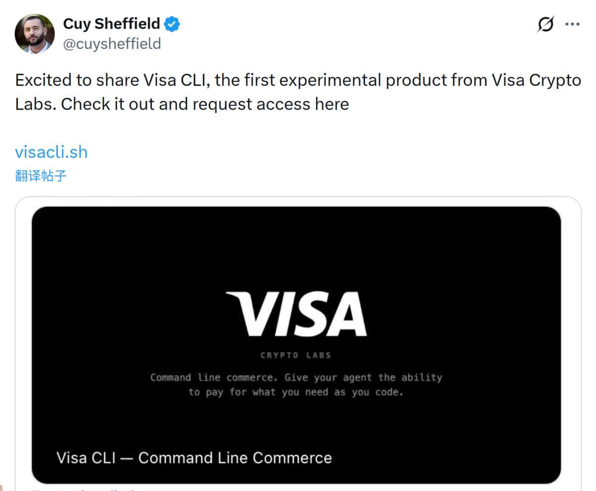 像 Visa Crypto Labs 就推出了首个实验性产品 Visa CLI,尝试让 AI 代理在编写代码和调用服务时,能够安全地完成所需费用支付。如果把这件事放在更大的语境中去看,它的意义并不在多了一个工具,而在于支付的主体,第一次开始从「人」转向「程序」。