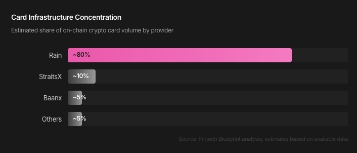 发卡机构(Rain、Reap、Baanx、StraitsX):连接链上与传统金融的受监管桥梁。最重大的结构性变化是全栈发卡机构的出现:直接拥有 Visa / 万事达核心会员资格,将项目管理与发卡结合,绕开传统赞助银行。