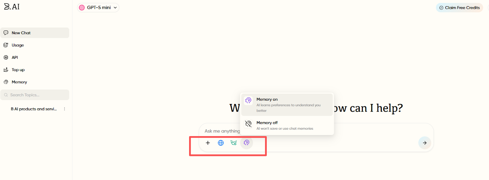 值得一提的是,在 B.AI 聊天界面下方,提供了多种高阶功能,以提升用户使用体验:
