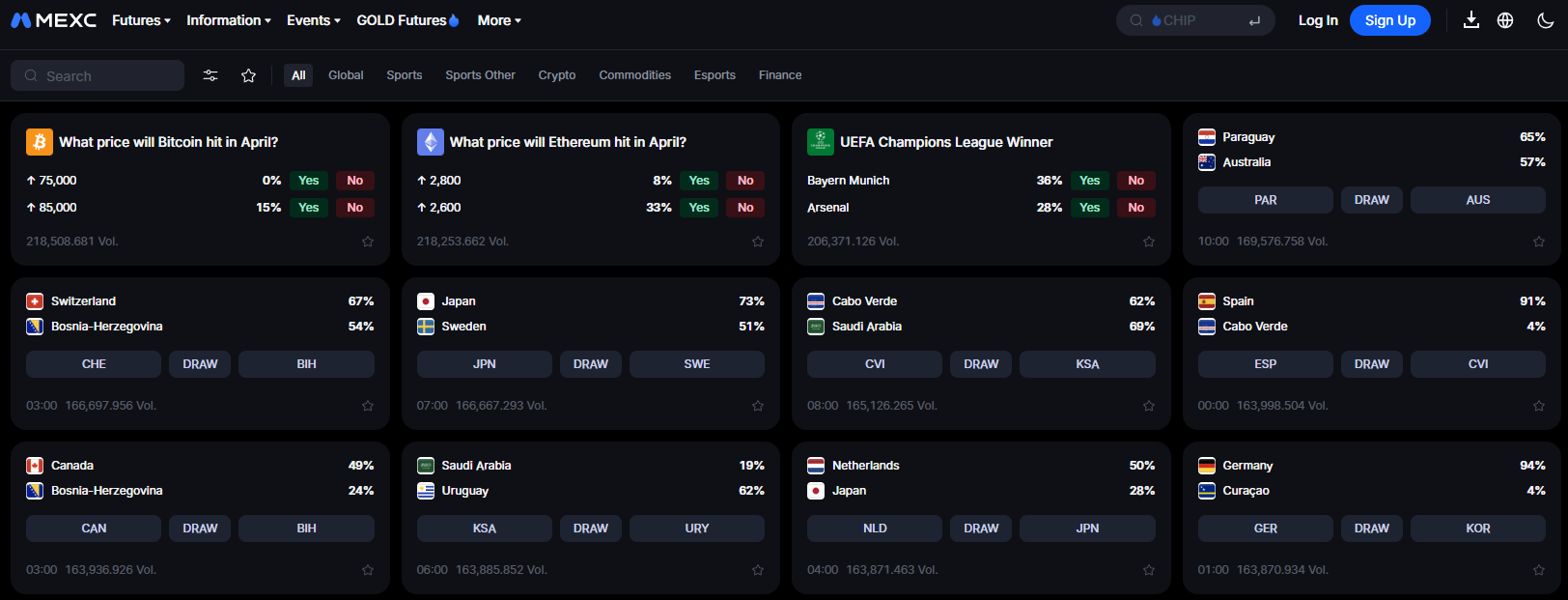 2026 年 3 月 16 日,MEXC 正式上线 Prediction Market Beta(事件合约),成为少数较早推出自建预测市场的 CEX 之一。