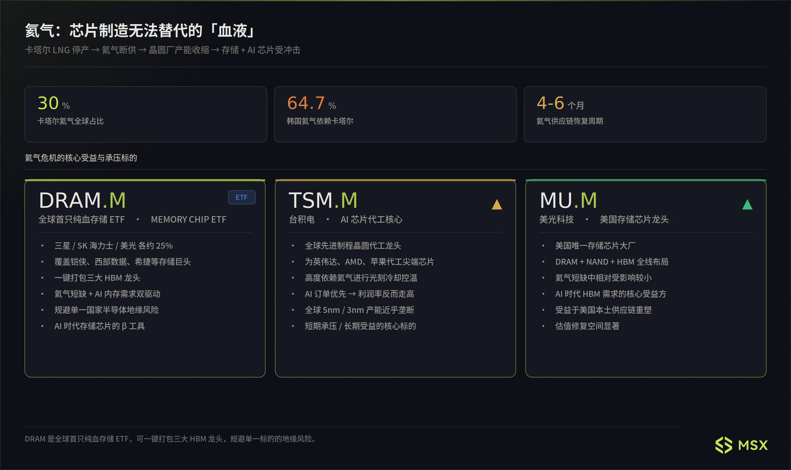 其中 MSX 已上线的 DRAM.M、TSM.M、MU.M,刚好对应这条链上的几个关键观察点:​