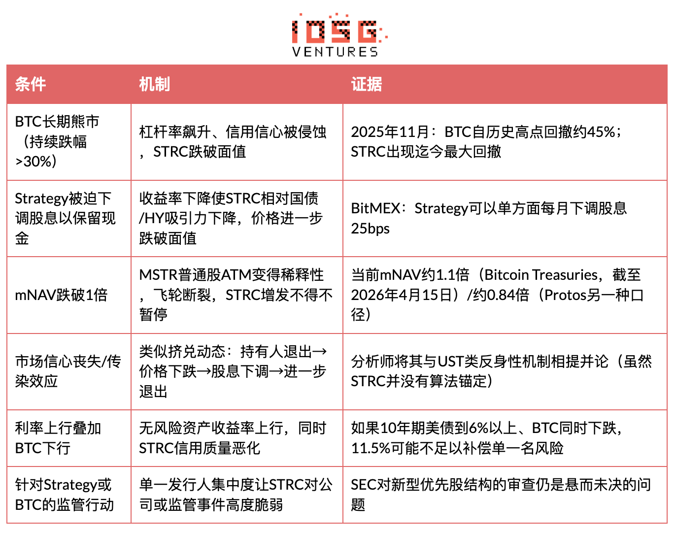关键问题是:STRC 会不会进入一个自我强化的下行循环?答案是会,但要满足特定条件。这套机制有三个相互联动的失效路径。